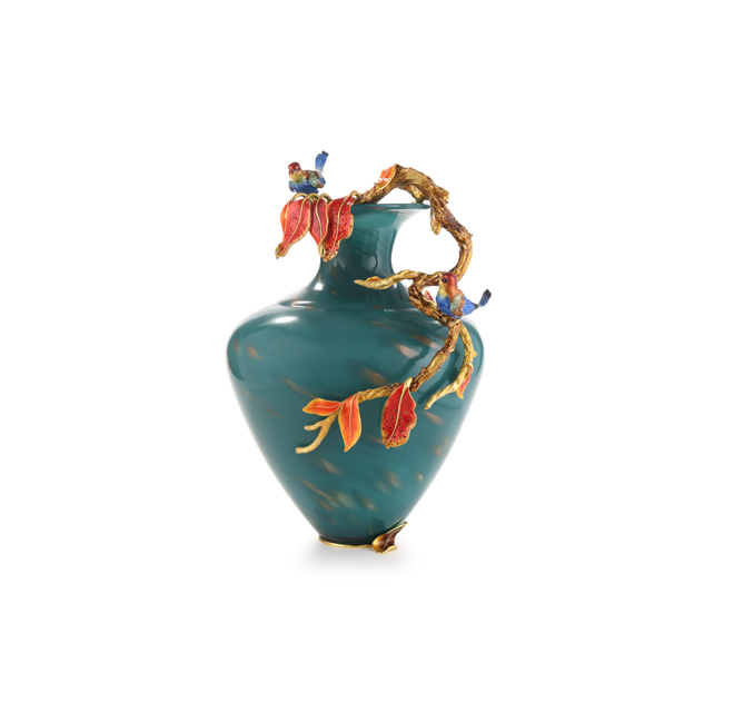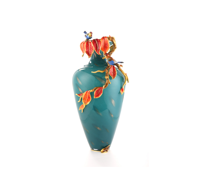 璀璨水鉆點(diǎn)綴的紅葉,因琺瑯彩唯妙工藝而閃耀著熱烈的光芒,熠熠生輝,寓意鴻運(yùn)當(dāng)頭。