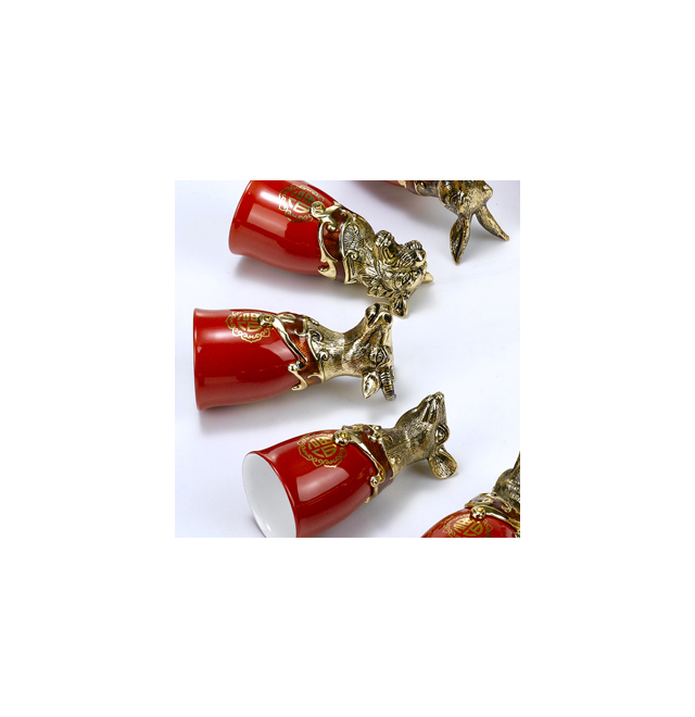 靈感來自于圓明園十二銅獸首,精選景德鎮(zhèn)陶瓷杯體,色澤純正,釉體光潔,聲響如馨;將十二生肖動物頭鑲嵌于陶瓷杯上,栩栩如生。陶瓷的溫潤與潔白,金屬的質(zhì)感與溫度,都讓優(yōu)雅格調(diào)恰到好處,卓越品位綿綿不絕。
