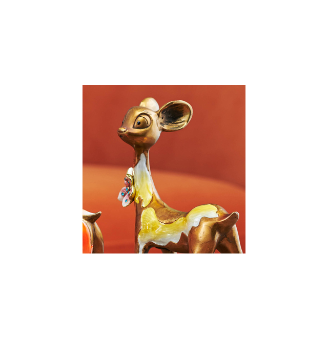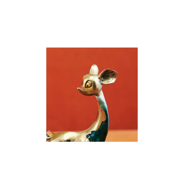 其樂融融系列是對自然生物之美的贊頌,五只形態各異的由純銅工藝鑄造的萌鹿,其中有兩兩相依深情對望的,有好奇地張望的,形成一幅其樂融融的幸福景象,象征家庭美滿、幸福快樂。小鹿身上由異形陰雕圖案裝飾和杏花點綴,鑲嵌水鉆和琺瑯彩藝術工藝令其更臻絕美,經爐火焙燒的色彩,呈現獨一無二的深邃感,且歷經時光荏苒,亙古不變